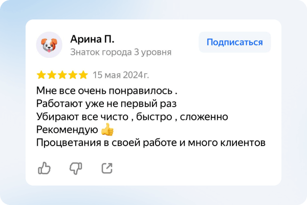 Оставьте заявку и наш специалист с опытом 10+ лет рассчитает стоимость уборки вашего объекта и подберет удобное время для выезда